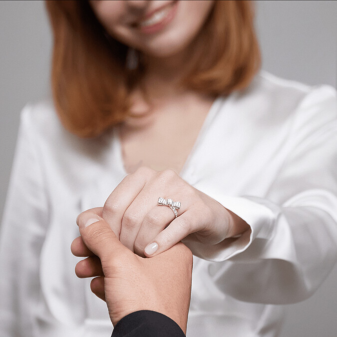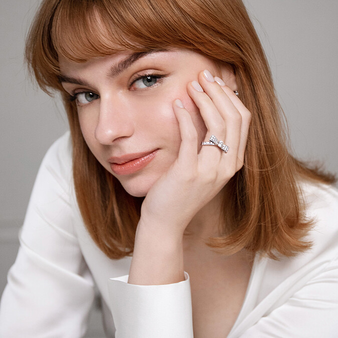 因此,林曉同「小公主」系列珠寶以蝴蝶結多樣的曼妙姿態呈現,密鑲鑽石交融而成耀眼的蝴蝶結,完美保留織物絲帶輕盈柔軟的質感,演繹立體生動且剛柔並濟的設計美學。更以獨特的傾斜角度貫穿整個「小公主」系列,讓作品具有辨識度以外也更顯活潑生動,彷彿女孩嘴角淺露的甜蜜微笑,更是專屬幸福印記。