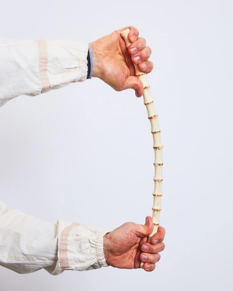 竹節提把其實是極其考驗工匠技術和工藝的,從竹枝挑選、軟化和明火加工,再將材料處理成半圓弧形,最後到塗漆料再烘烤,才能擁有閃亮的金褐色表面。每道工序都需要手工製成,需要歷經超過13個小時的手工製作,因此每根竹節提把都是世上獨一無二的寶貝。