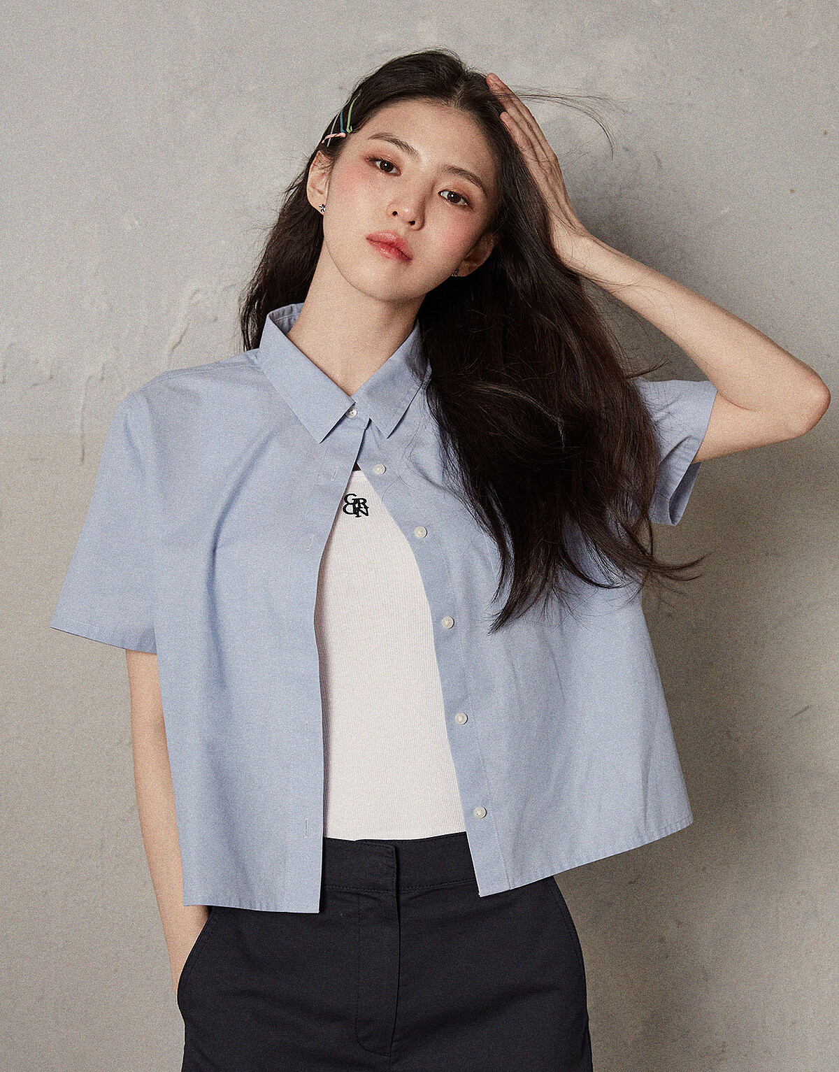 第二套則是與短袖襯衫搭配,裡面以一件羅紋背心打底,韓韶禧只扣上襯衫第一顆扣子,個性之於亦帶有一點書卷氣質。