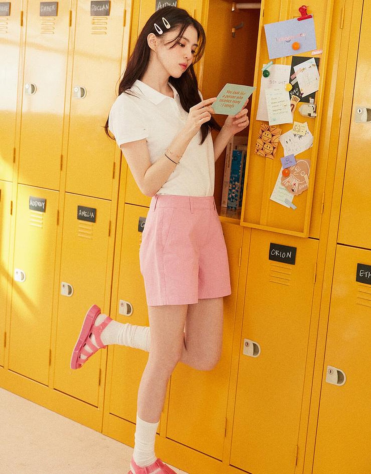 最後一套,韓韶禧則以Polo衫搭配,俏麗又活潑的玫瑰粉色西裝短褲,簡單地與素白色上衣,完全就是夏天的顏色啊!