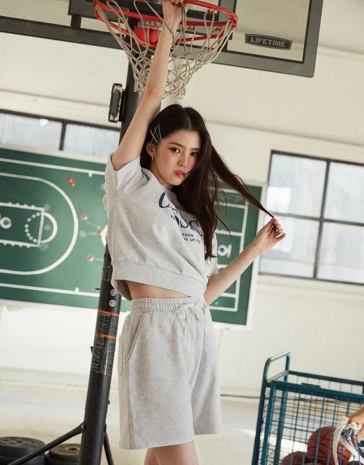 運動套裝在這幾年的休閒穿搭潮流變成出境率相當高的一套造型,其挑選重點在於短褲的長度,可以像韓韶禧選擇一樣,大腿一半的長度打造長腿比例。除了常規地搭配運動鞋,也可以試試看與牛津鞋、樂福鞋等皮鞋搭配,中和掉運動套裝給人過於休閒、隨興的感覺。
