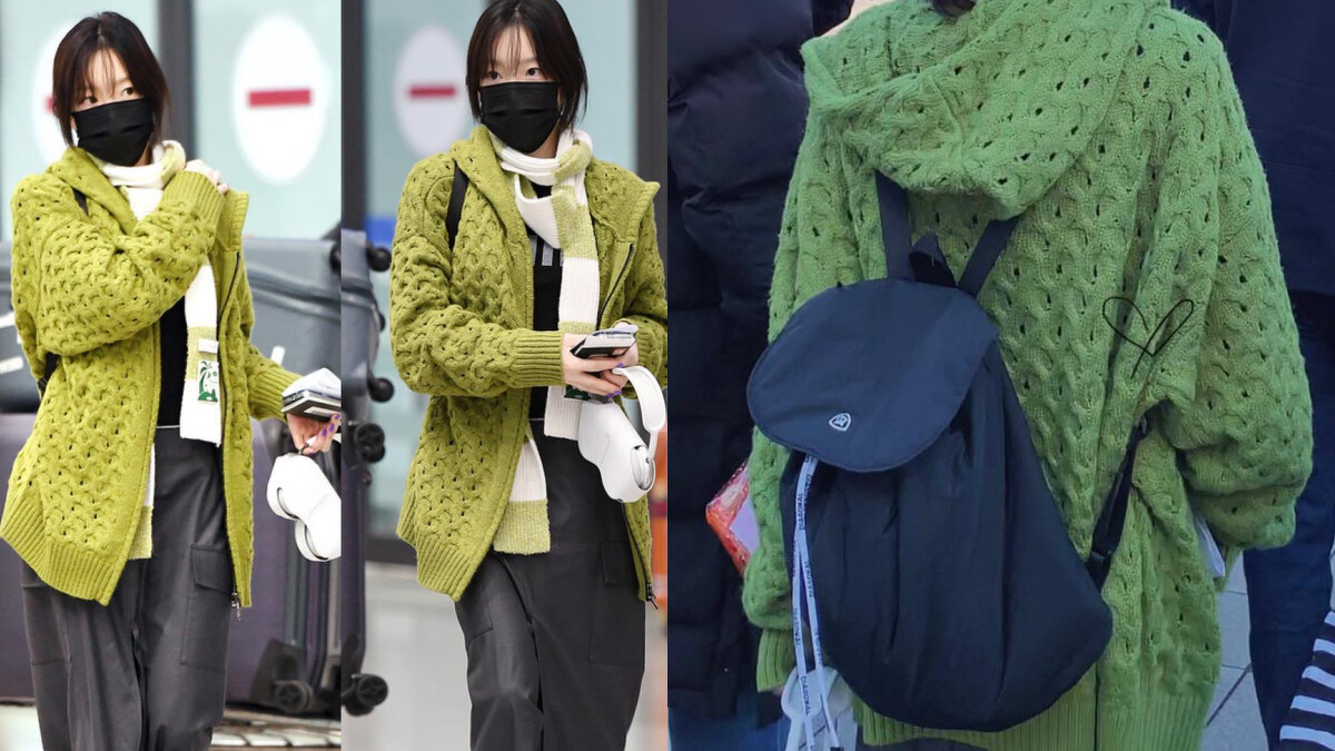 夏天不可或缺的編織包元素,太妍之前曾背過Kijun的毛線針織款,專為水壺而打造的編織包,綴上同為手工編織而成的葡萄掛飾實在太可愛。太妍同款現已停產,可參考品牌最新款式,一樣是水壺編織包,上方的裝飾改為泰迪熊圖樣。