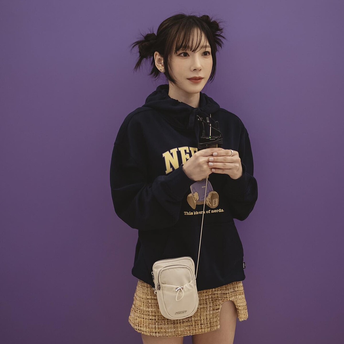 帶著街頭個性的Nerdy,在太妍身上的出鏡率超高!舉凡上衣、外套、帽子、包包全都有,若出門習慣帶少少物品的你,推薦這一款小巧的string mini bag,做為日常小包再適合也不過。