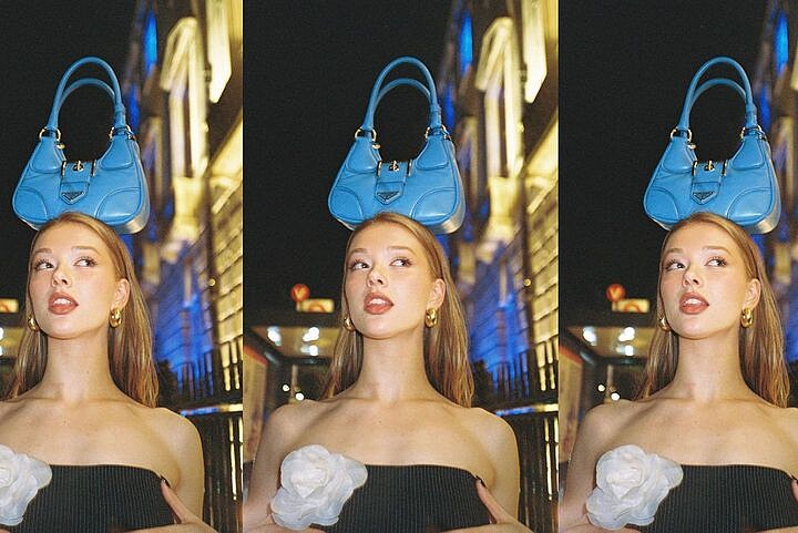 不難發現,Jessica Alexander的私服經常以俐落又時髦的黑白色系為主,包包的顏色選擇就偏向較為繽紛的糖果色,為整體造型增添一抹亮點。Prada的Moon腋下包,就如其名,輪廓宛如彎彎的新月一般,以柔軟的Nappa皮革製作,澎潤外型帶著一點可愛的少女個性。