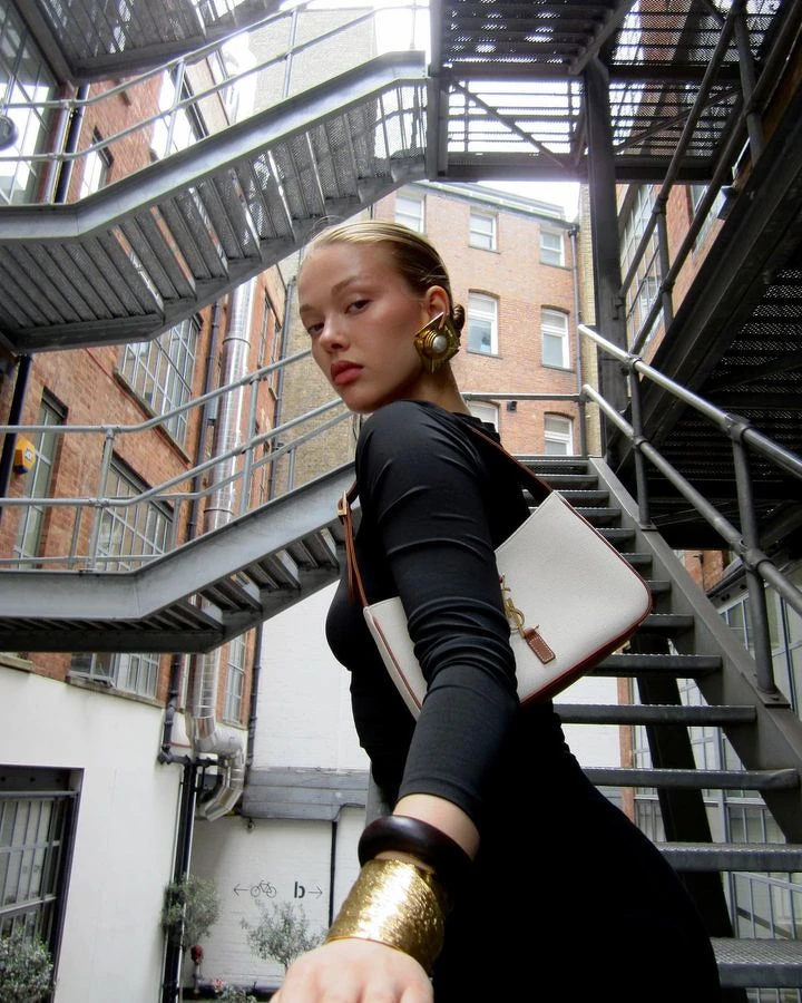大名鼎鼎的LE 5 À 7還需要多作介紹嗎?自2021年問世,跟著代言人Rosé一同在形象大片亮相,就一直穩坐Saint Laurent暢銷寶座,不僅每季都會有新色推出,現在也漸變成一個LE 5 À 7家族,有更多元的包型輪廓。Jessica Alexander所擁有的是帆布與小牛皮拼接的款式,氣質的米咖配色不論是與全黑穿搭、小碎花都很適合;帆布材質也相當適合夏日時節。