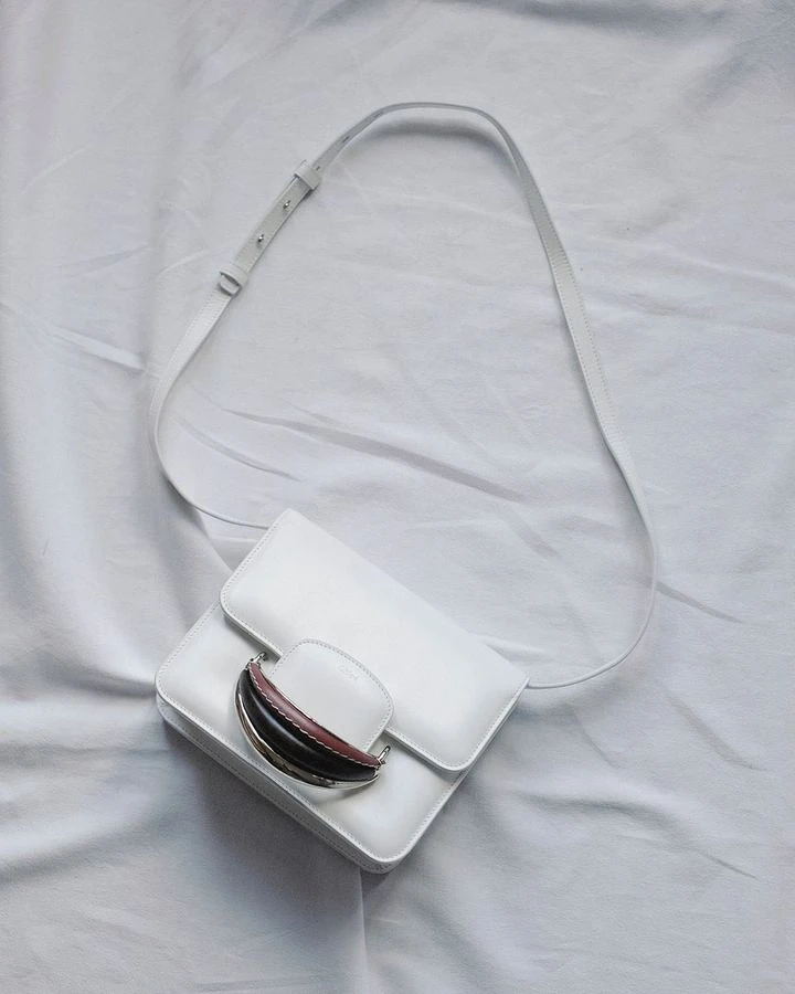 再來是當季款——Penelope包包,呼應2023春夏系列的工業風主題,Penelope的外型走一個俐落、極簡的形狀,包包翻蓋上的扣飾則是取經品牌典藏庫的珠寶設計。