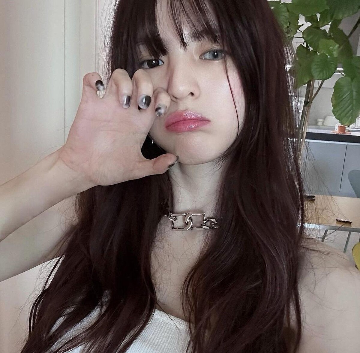 韓韶禧於自拍照中所佩帶的項鍊看起來相當高級、有型,但其實是並不是昂貴精品,而是來自CHARLES & KEITH的平價飾品,粗鍊條設計搭配經典Gabine D字扣環,份量感凸顯氣勢之外,又能輕鬆替造型增添亮點。