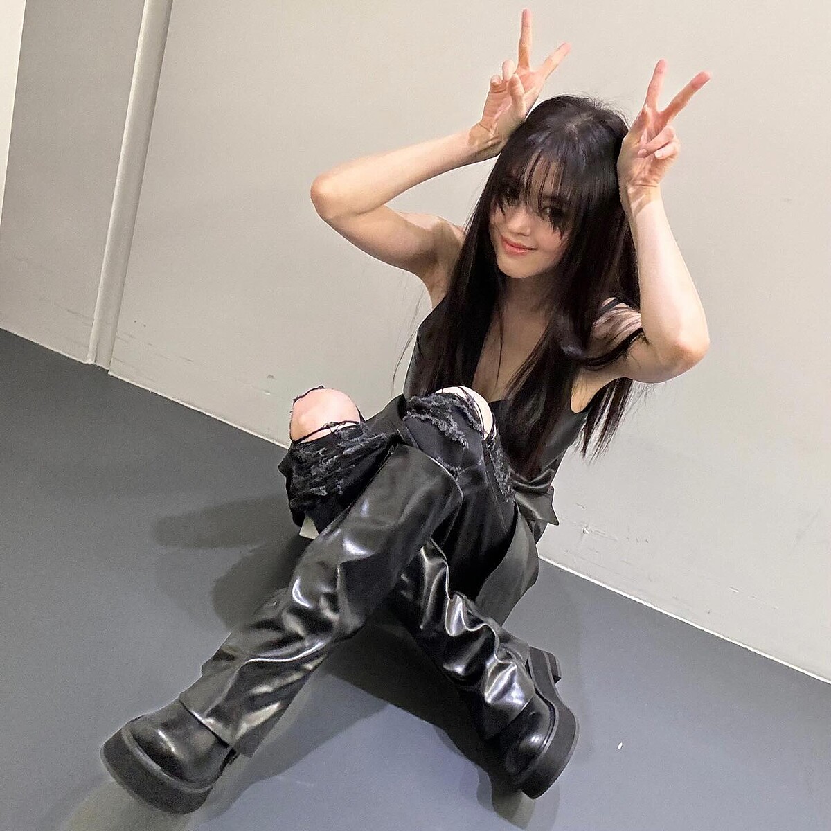 Hetherment的風格簡約,剪裁凸顯身形、顯瘦,韓韶禧身上的黑色透視上衣為Hetherment的單品,她內搭一件黑色背心製造層次,營造她獨特的暗黑風格。