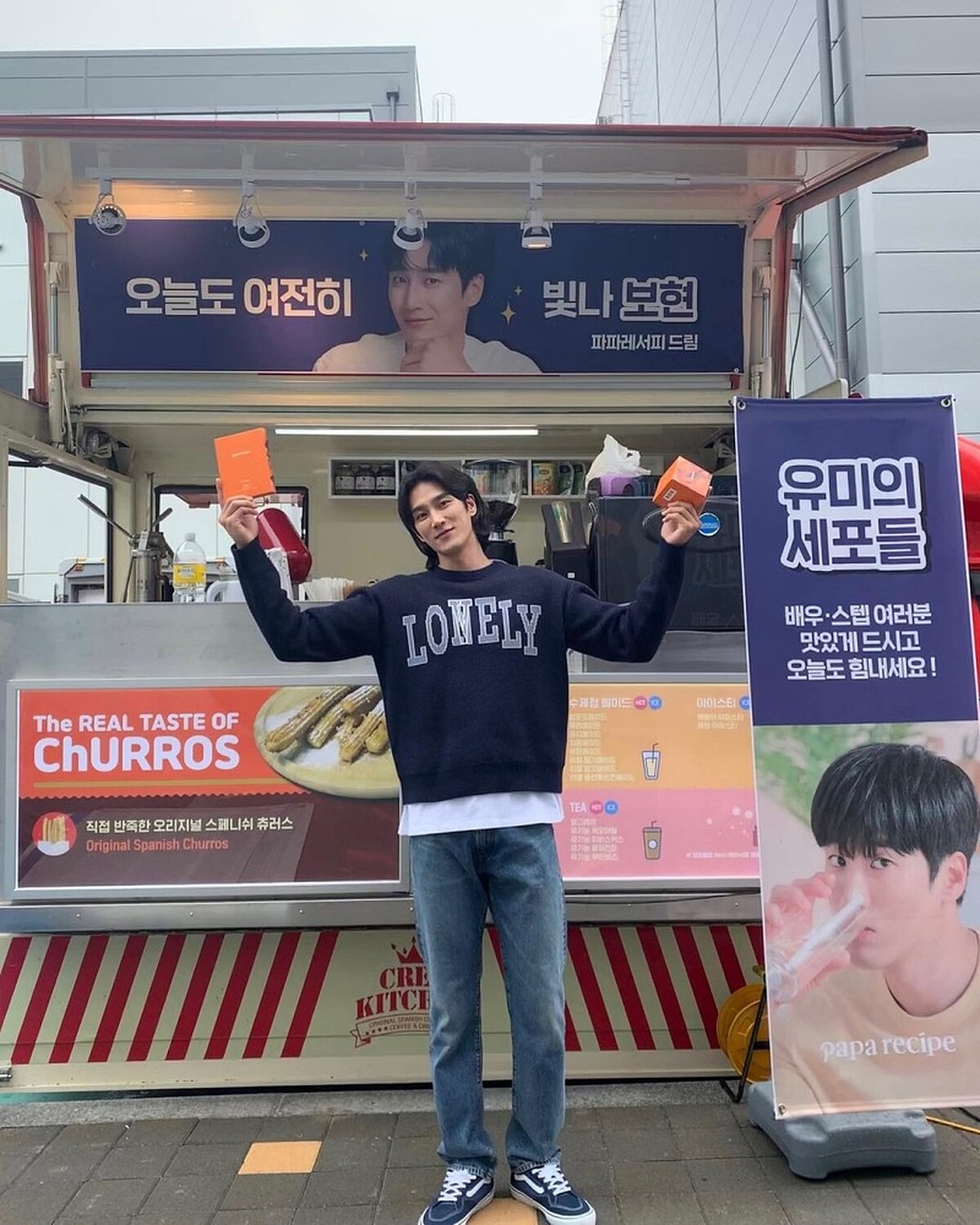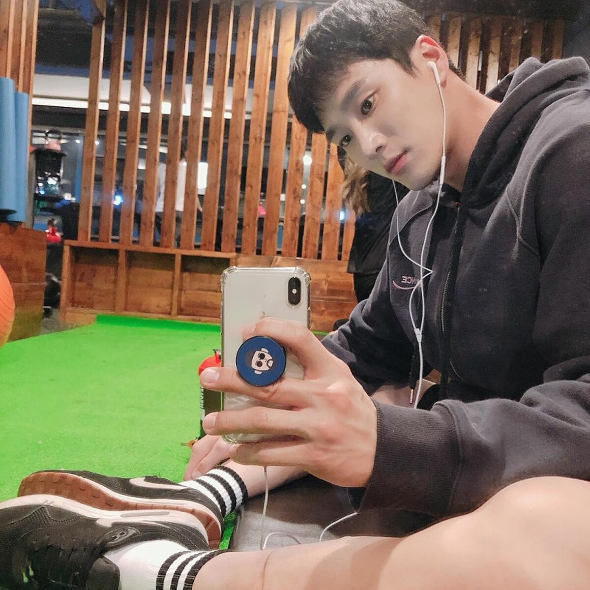 而在私服穿搭中,安普賢也很常會搭配上帽子、眼鏡、襪子讓造型更完整,雖然沒有太繁複的單品,但整體還是可以看出精心搭配的心思。