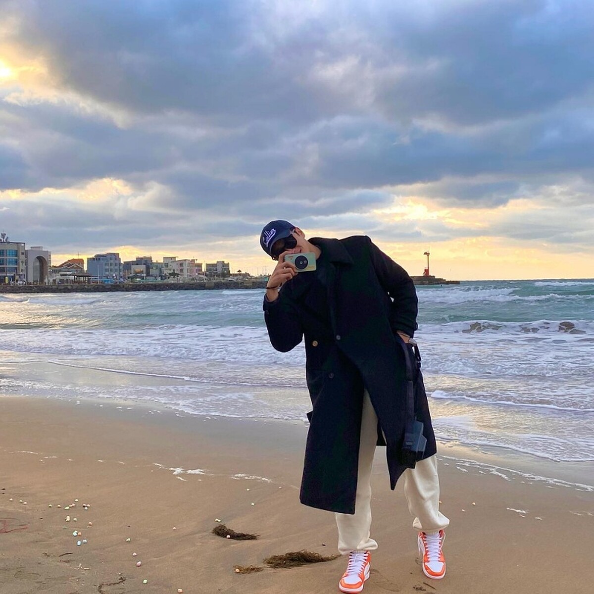 外搭的部分,擁有187公分的安普賢非常喜歡以長大衣的方式搭配秋冬的造型,無論是襯衫或是運動棉褲,都能用長大衣穿出時髦的質感,不過在大衣長度的挑選上可能要比較注意,建議可以選擇大概落在膝蓋的位置為比較好駕馭。