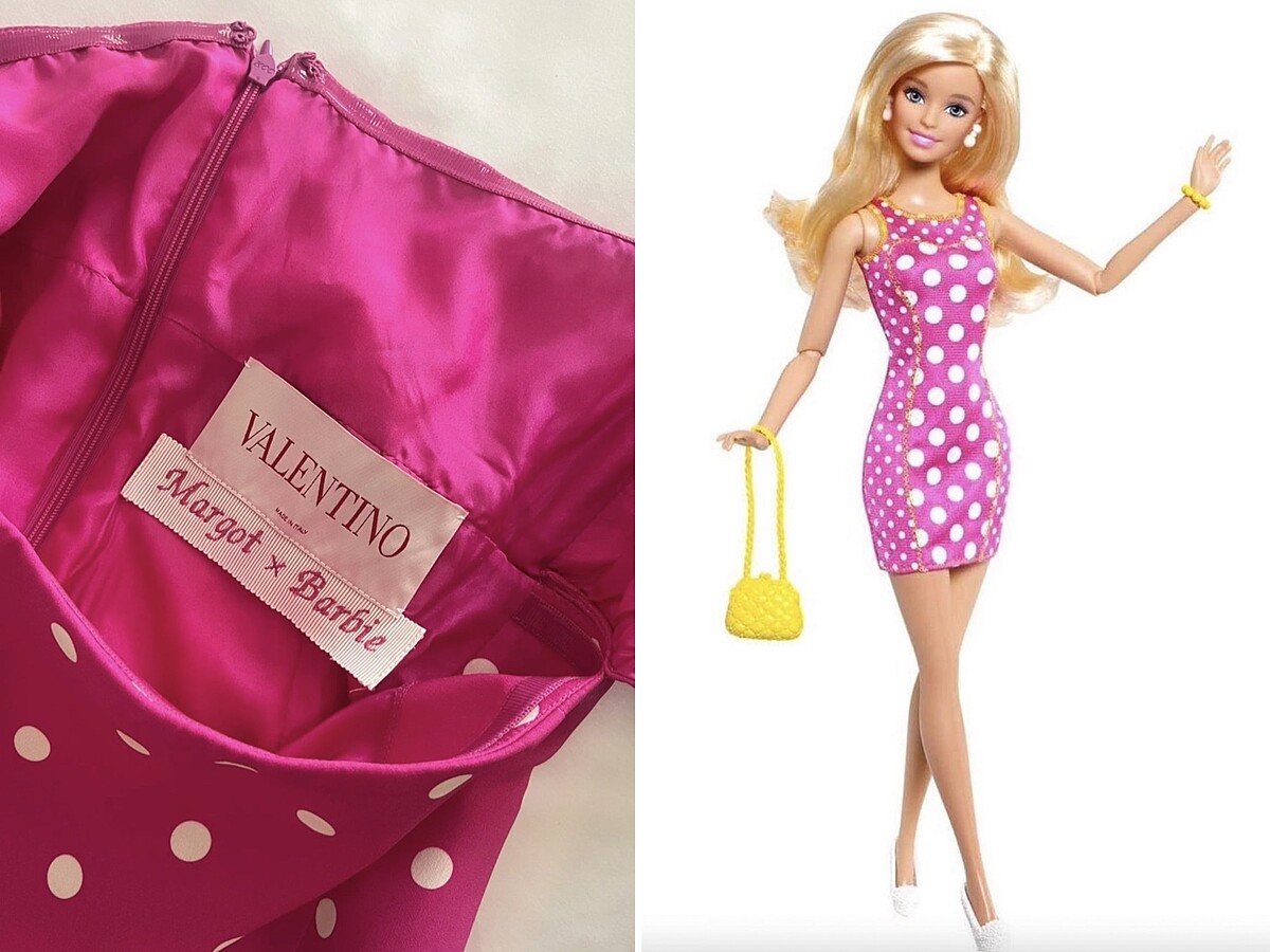 裙子中空的設計很是性感,造型師Andrew Mukamal在社群上分享,這件裙子出自Valentino過往的設計,只不過改以芭比招牌的亮粉色重新演繹,標籤上還有Margot X Barbie的字樣,特別可愛吧!瑪格羅比無違和的把芭比的風格帶進現實世界,不禁要懷疑她整個人真的快要變成芭比了吧。