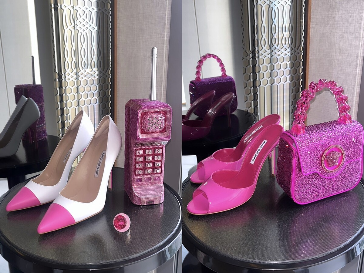 瑪格羅比轉換情境變成「派對芭比」,換上屬於芭比的晚禮服造型,嶄露甜美與性感自信。2套造型包括手上的手袋皆來自Versace,提升還原度的精隨,腳上的Manolo Blahnik高跟鞋也功不可沒!