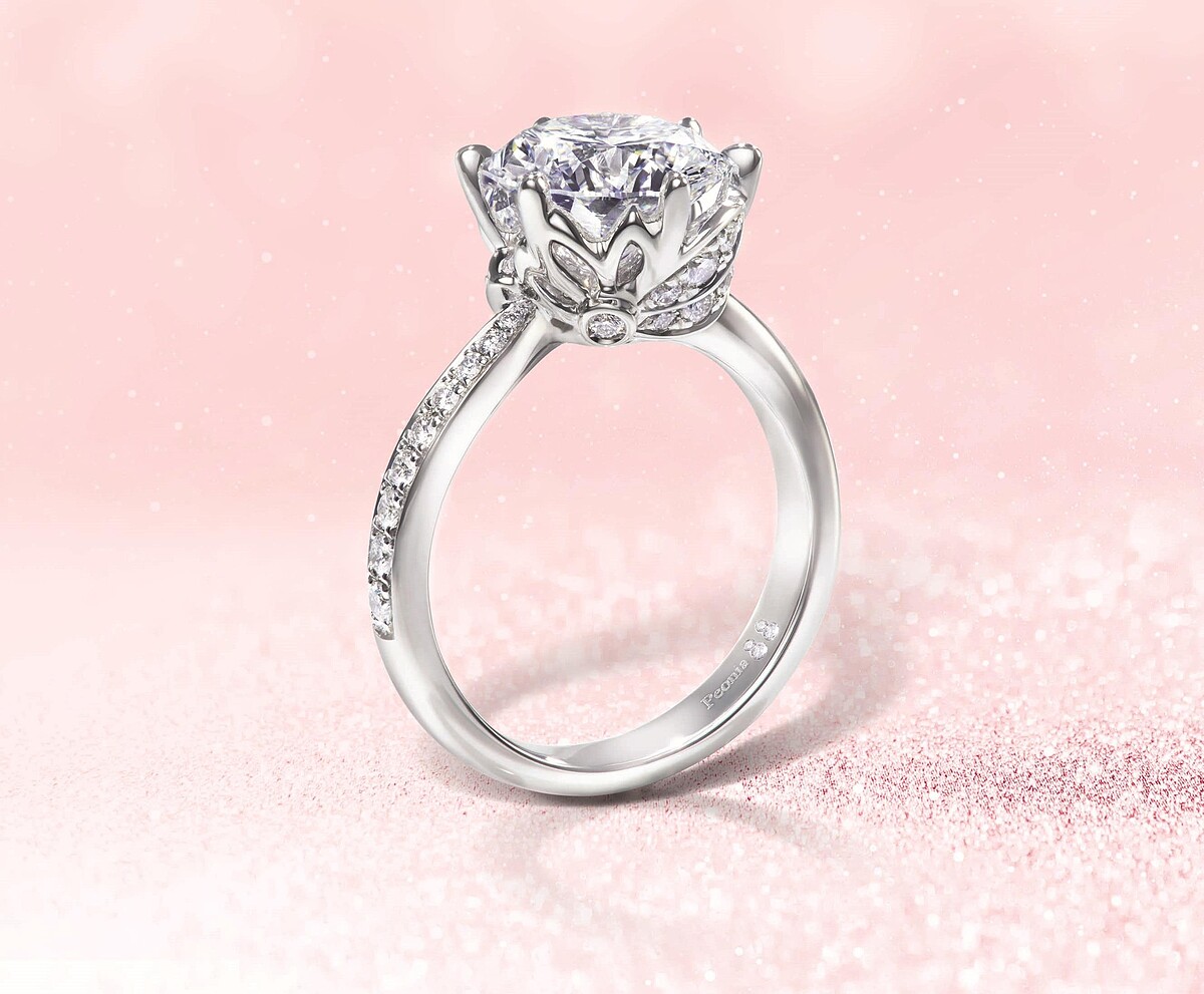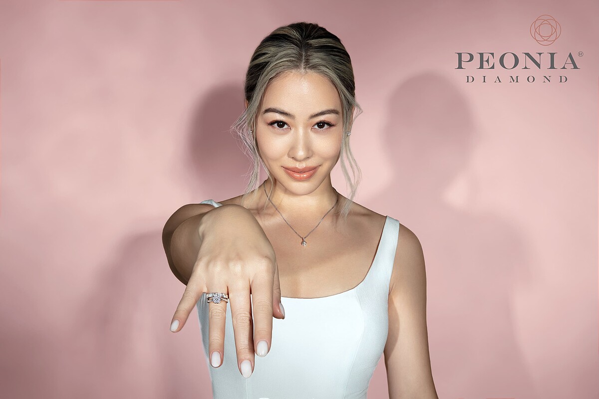 鎮金店Just Diamond以PEONIA DIAMOND彼愛麗鑽石打造的系列作品中,將牡丹花姿以藝術優雅方式呈現的「炫美系列」,絕對是最值得入手珍藏的首選,單鑽戒指在設計上就頗具巧思,側面便能看到牡丹花朵的靈動樣貌,搭配上「牡丹花88瓣切割法」,更顯出色耀眼。炫美鑽石吊墜則透過88瓣切面鑽石,完美地演繹出花中之王牡丹最耀眼的魅力,將璀璨之美永留在鑽石中。
