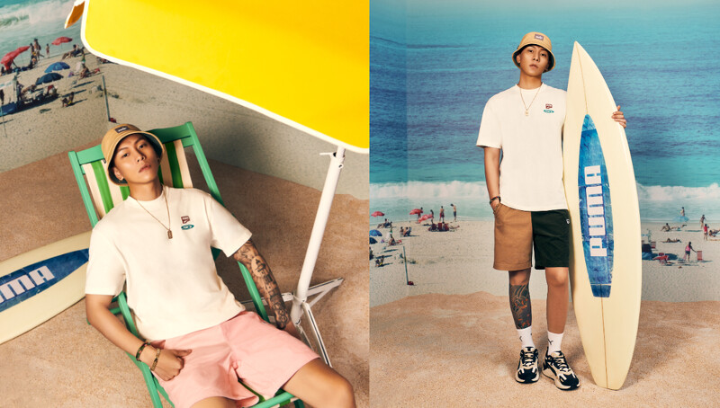 潮流圈三巨頭 E.SO 瘦子、Julia 吳卓源、和謝欣穎分別以夏日海灘祭為背景,搶先穿上 PUMA RS-X EFEKT 復古老爹鞋解鎖今夏人氣穿搭流量密碼。E.SO 瘦子上身欽選 PUMA 純白印花短袖 T 恤,胸前海浪圖騰以及背後 Explore More Good 字樣展現滿滿夏日熱血氛圍,下身搭配 PUMA 拼接撞色燈心絨短褲,為整體穿搭增添繽紛色彩。Julia 吳卓源十足展現陽光女孩的魅力,穿著 PUMA Brand Love 系列短袖 T 恤,下身搭配寶寶粉藍 PUMA T7 高腰短褲,小露性感打造完美身形比例。壓軸登場的謝欣穎則是以波希米亞風展現異國魅力,上身選定大地色 PUMA 羅紋合身短版 T 恤,露出訓練有成的性感腹肌,下身搭配同系列羅紋喇叭褲,上短下長的小心機穿搭法則成功打造9頭身的超模比例,同時以女孩最愛的 PUMA SENSE 植物皮革水桶包點綴, 可說是夏日精品系女孩穿搭指南。