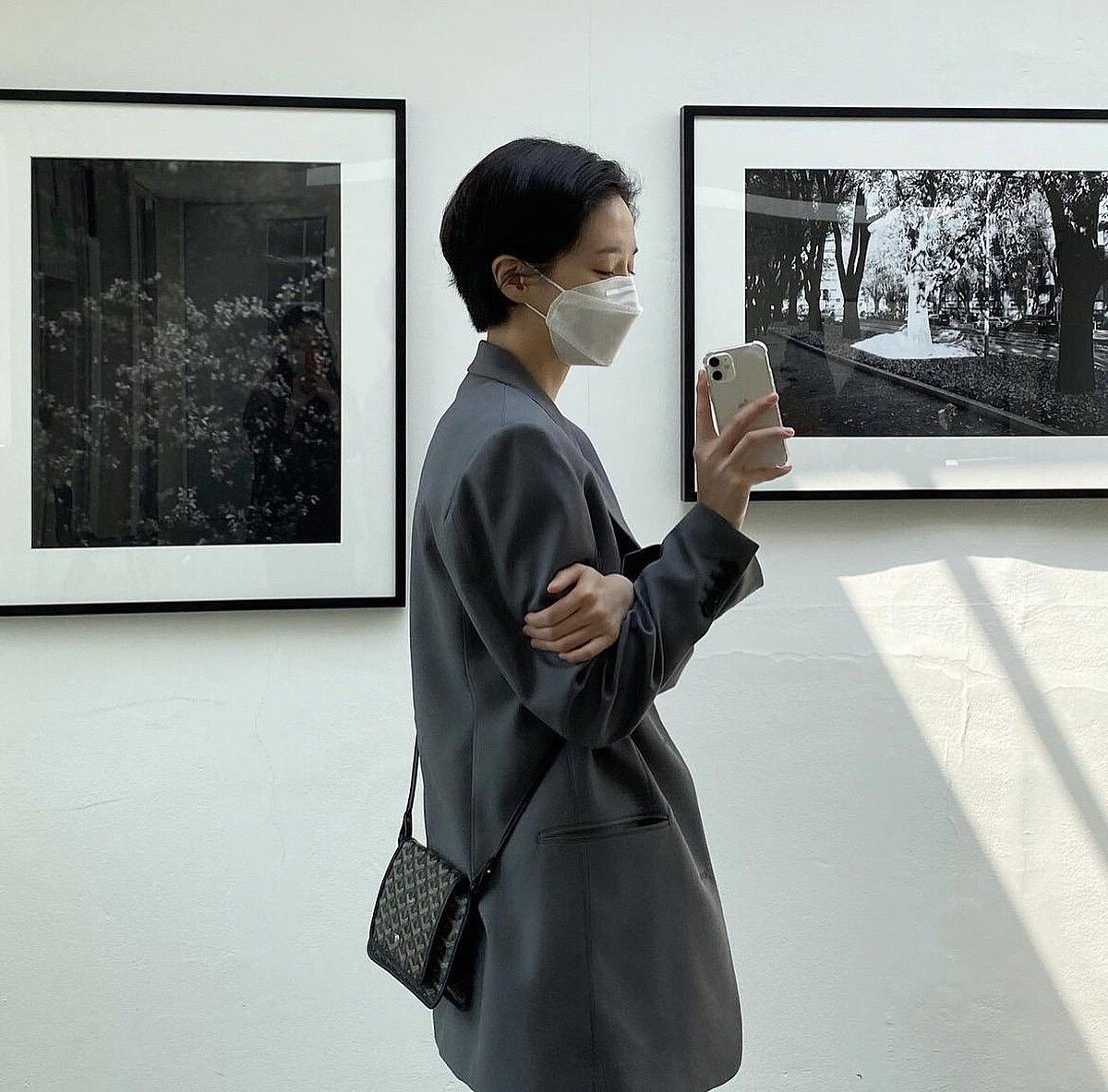 朴圭瑛在剪短髮後駕馭起中性的造型更是妥妥拿捏!穿起俐落版型的西裝外套特別時髦。