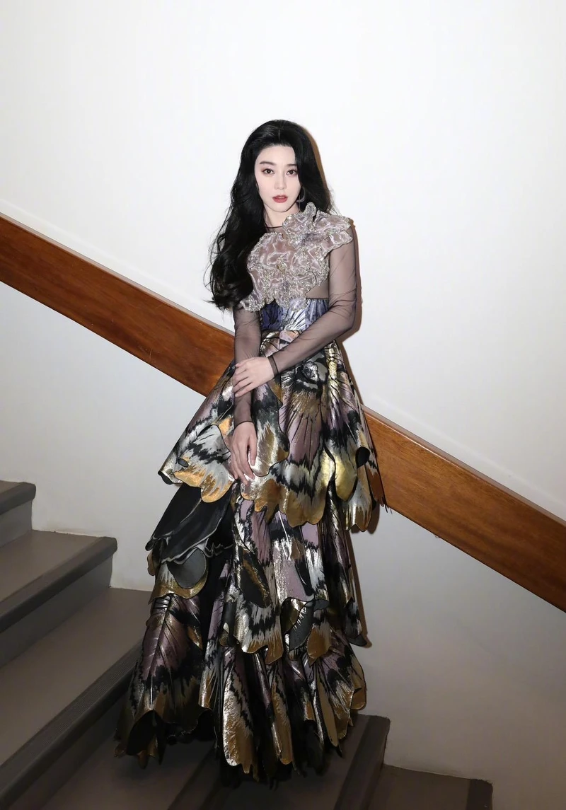 范冰冰穿著ArdAzAei 2023春夏高訂禮服參加品牌2023秋冬高訂大秀,身前一片花瓣形狀布料裝飾,背後則是全透視的黑透紗,下身金屬色調堆疊成花卉的圖案與形象,瀰漫十足高級感。
