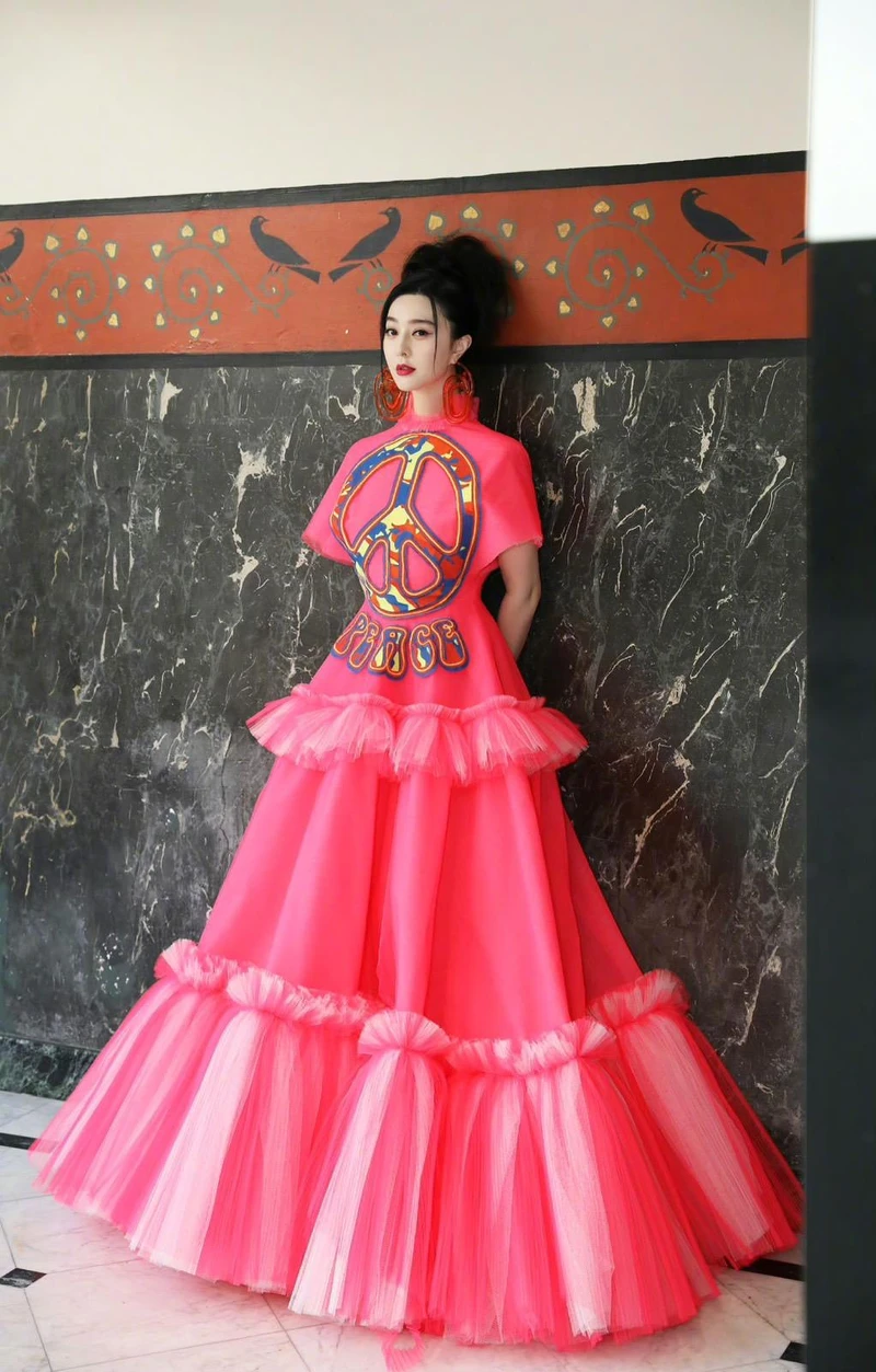 這幾天以來范冰冰幾乎每一套造型都獲得廣大好評,但是她現身Viktor & Rolf 2023秋冬高訂大秀時,就得到了比較多翻車的評論,范冰冰身上穿著品牌2019春夏系列的高訂禮服,難以駕馭的螢光粉色紗裙上有大大的PEACE符號,高包頭的髮型在腦後凌亂的散開,讓許多粉絲表示看不懂這髮型與裙子。