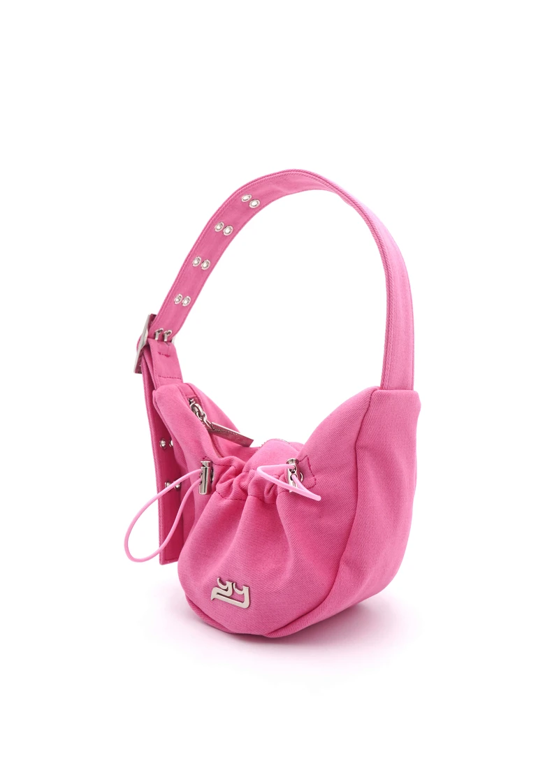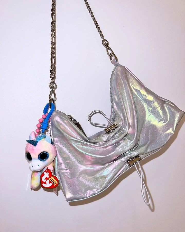 Hyein和Hanni曾經在節目中背上YIE YIE的熱賣包款Sasha Bag,簡約柔軟的腋下包注入抽繩與金屬雙排扣的肩背袋設計,背上身便能成為Y2K風穿搭的亮點。