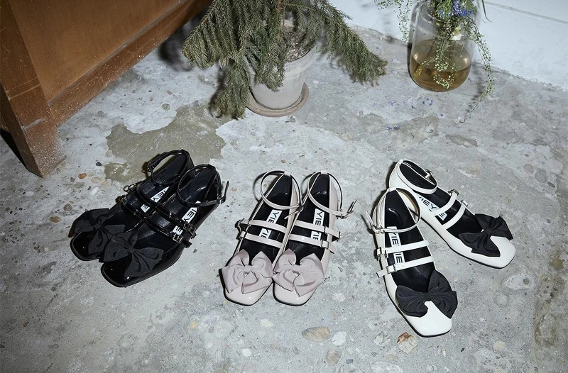 YIE YIE的瑪莉珍鞋從簡約出發,運用復古蝴蝶結與增加繫帶,讓瑪莉珍鞋三兩下就變得更可愛,也提升辨識度!