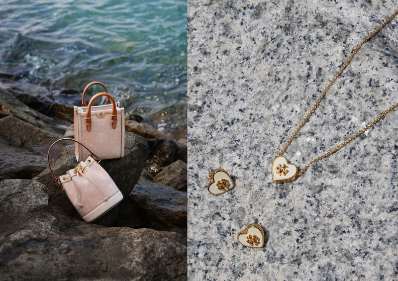 Tory Burch將T Monogram染上夢幻又甜美的櫻花嫩粉來呼應充滿粉紅泡泡的情人節氣氛,為品牌經典包換上新衣;此外,另有愛心形狀飾品如耳環、項鍊等,為日常穿搭帶入一點可愛亮點。