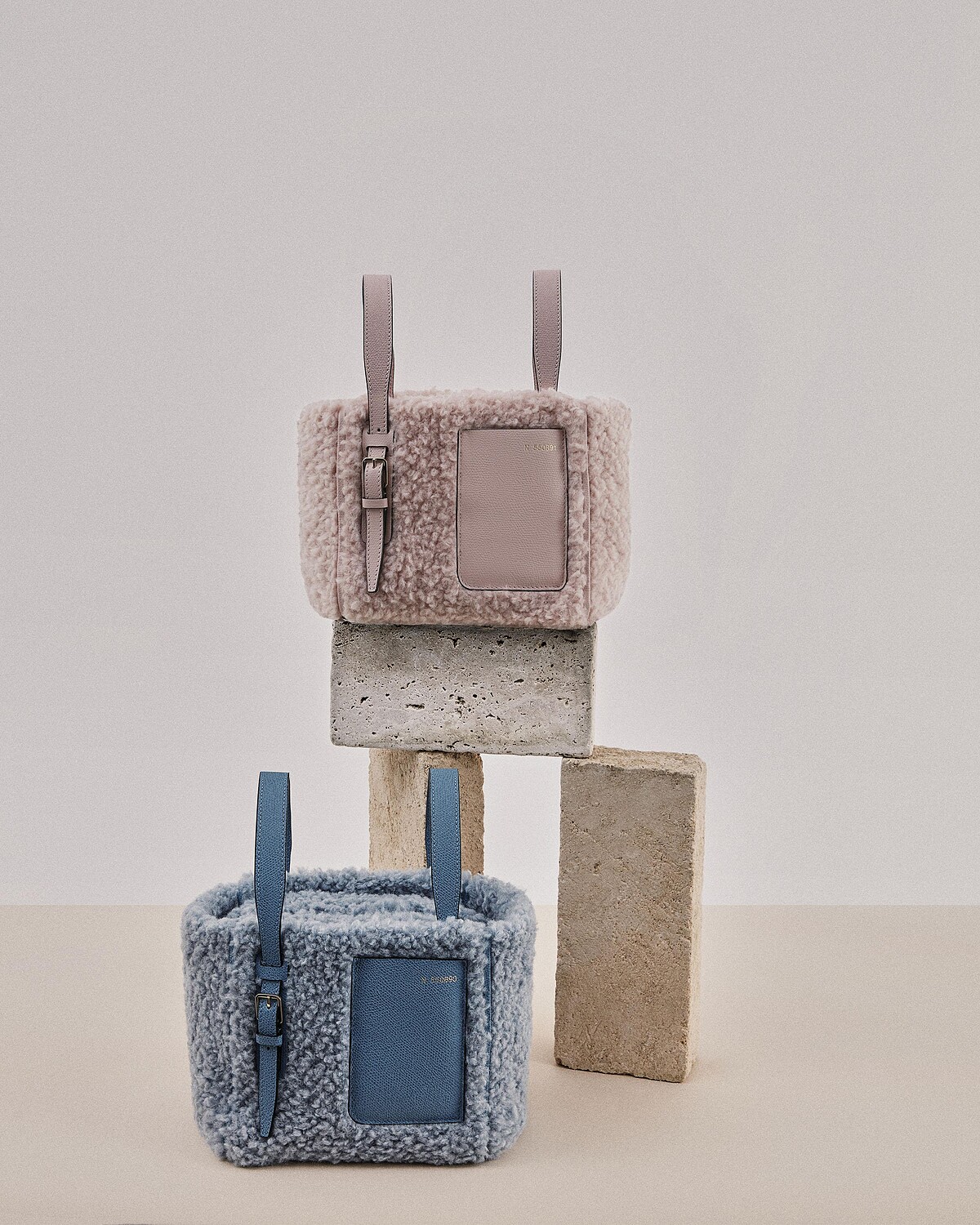 Valextra Bucket水桶包因為雙提把設計狀似兔子耳朵,所以有「小兔子」的可愛暱稱,今年秋冬,Valextra將水桶包換上羊毛圈鋪面材質,並搭配全新襯衫藍色和芍藥粉色療癒登場,根本少女心爆擊,是Valextra作品中最顯嫩的一款!