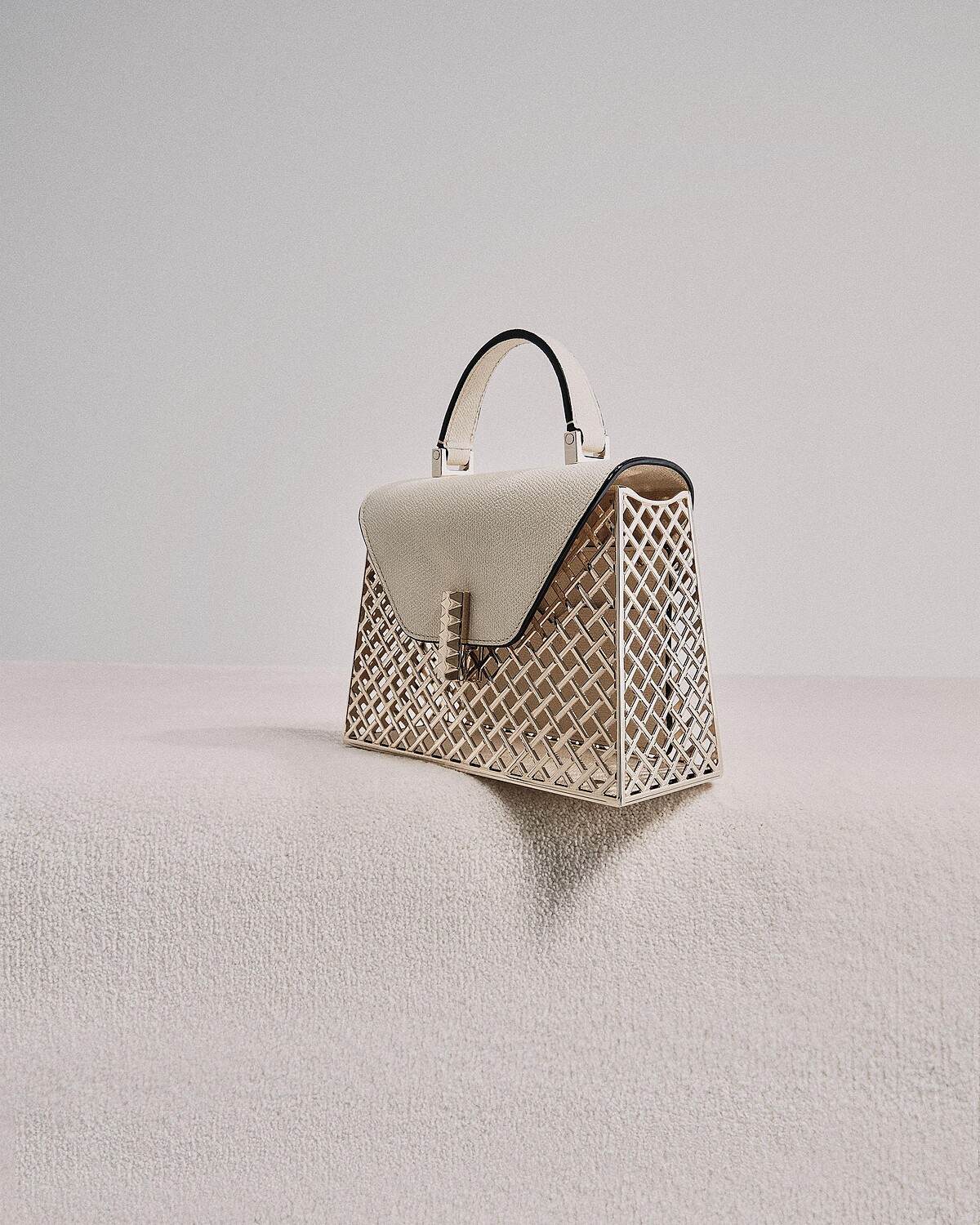 Valextra Iside手提包自2011年推出後便成為熱賣明星包款,今年秋冬大膽以金屬網眼的設計構築包身,並將鎖扣與精美的半寶石相結合,雖然整顆包都是透視的,內部依然不忘加入皮革內袋、照顧到細節,在在體現高超工藝技術,且手袋實體真的很有份量感,如此驚人的包包全台僅限量1顆也是很合理的吧?