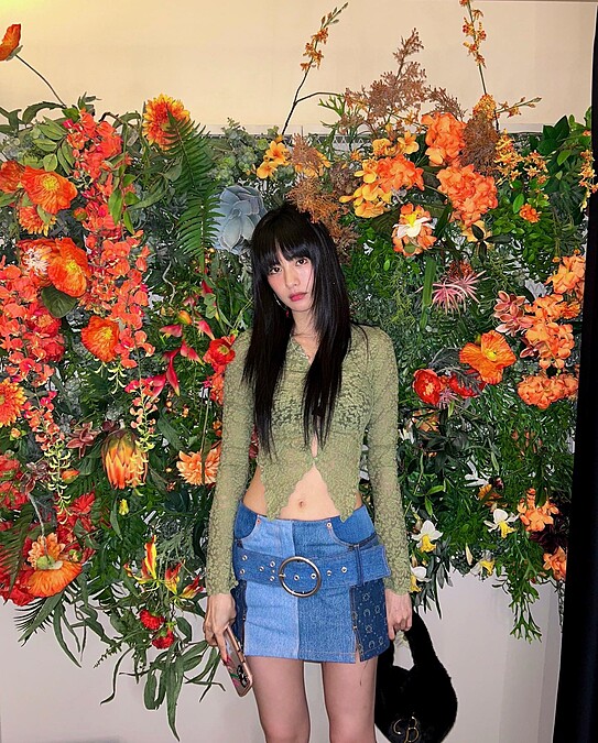集結小碎花、雪紡和荷葉邊等浪漫同義詞元素,Nana選擇用直筒牛仔褲來搭配,細節在於褲管上類工裝褲的口袋,加上寬版的皮帶點綴,甜美的小碎花瞬間變得十分有個性。