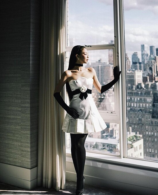 Jennie於公開場合或是表演舞台上,經常以正式的Bowcore風格造型現身,像是參加Met Gala時所選穿的CHANEL白色洋裝,以及出席坎城影展時那套經艷的黑裙。華麗的Bowcore風格則是大量被運用在Jennie的舞台造型裡,浮誇、可愛又有活力!