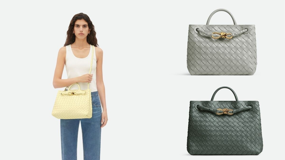 Bottega Veneta 推出的 Andiamo 系列包款,以100% 小羊皮革製成,配有滑動斜背帶,內部設有一拉鍊收納和兩個開放式隔層,除了原先的繽紛清新的冰淇淋色系,新色更推出了瑪瑙灰、石板色兩色,精細的編織工法,配上黃銅紐結綴飾,更顯秋冬沉穩與大器。