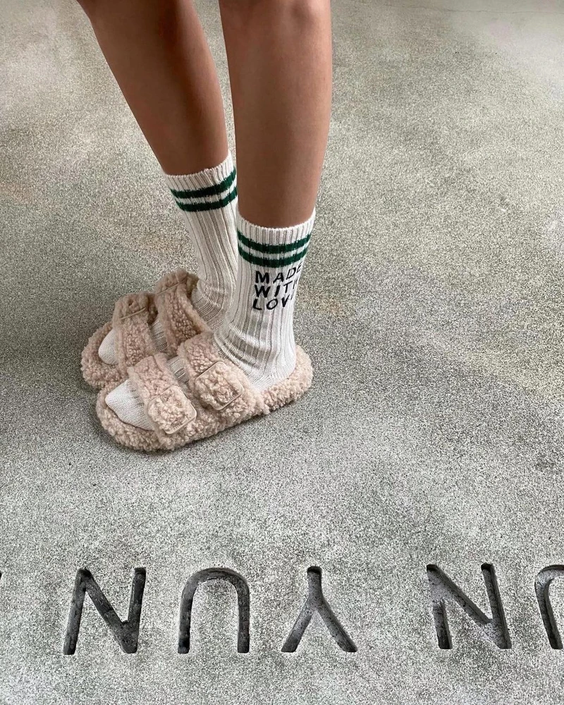 孫芸芸上腳毛毛涼鞋是來自於Arizona Love ,品牌設計以Trekky鞋款為主軸,有許多不同顏色的毛毛涼鞋,也為經典的老爹涼鞋增添時尚感,穿起來相當柔軟舒適,是孫芸芸常穿的愛將之一,該品牌不如精品高價,眾多選擇不超過台幣6千元。