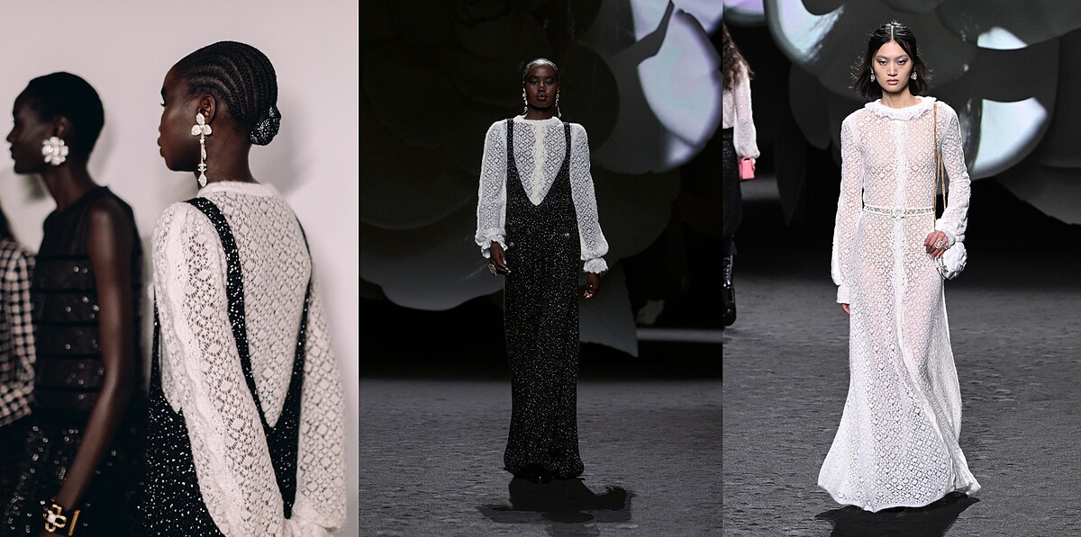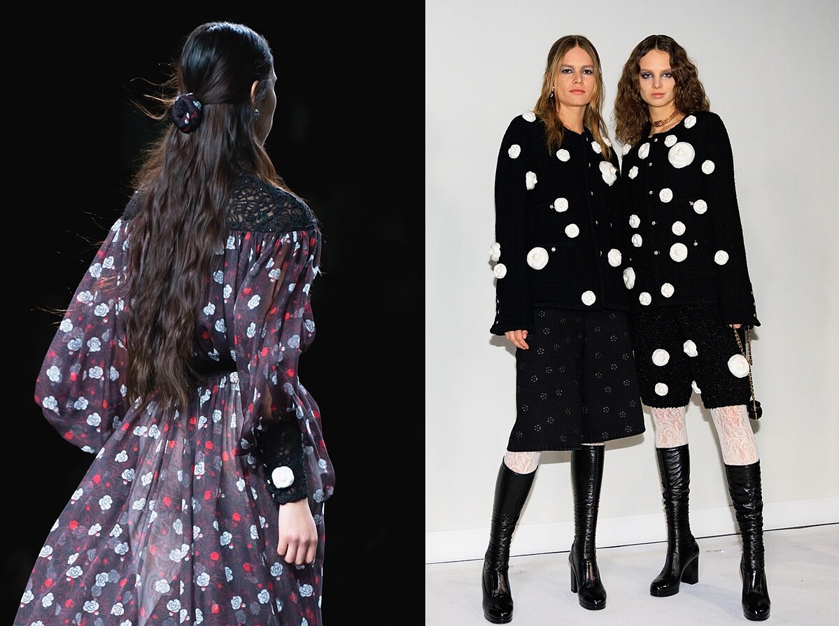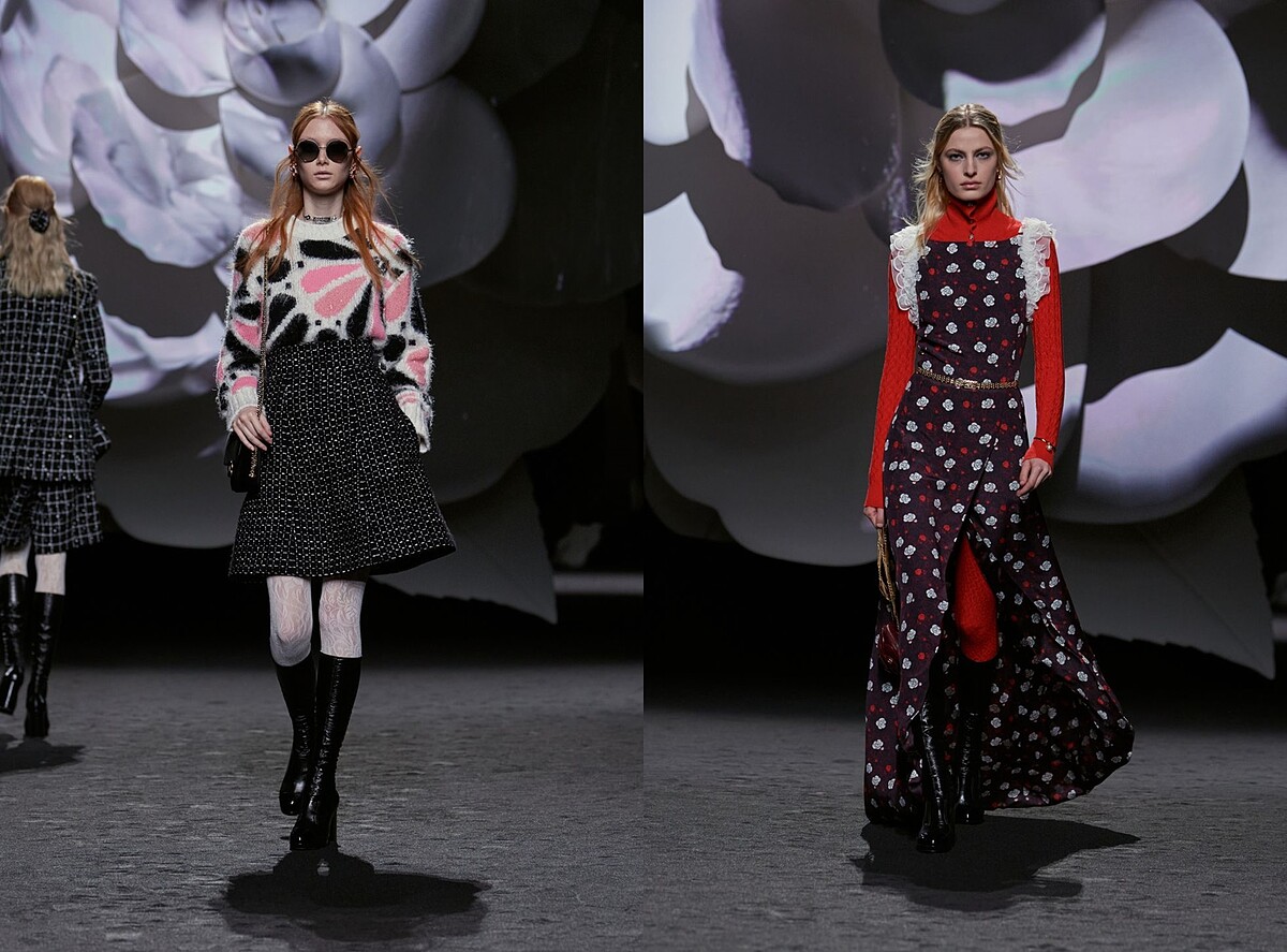 Virginie Viard賦予此系列更真實與迷人的風采,以溫暖包覆的大衣到頂級天然的材質,像是壓軸幾套的山茶花印花真絲洋裝,簡約又蘊藏精緻工藝的實穿作品,一同構築時尚巴黎女性風貌。
