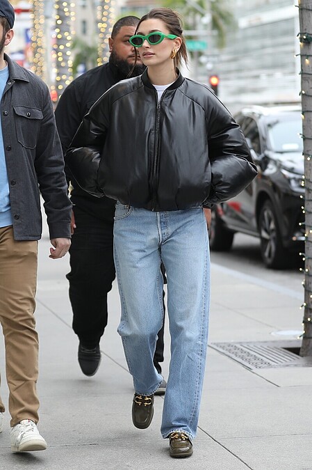 Hailey Bieber經常被拍到穿著Bottega Veneta的樂福鞋上街,除了熱門的Swell Loafer,編輯也推薦另一雙Hailey Bieber同款,是這雙Monsieur,上方的金屬扣飾讓基礎的樂福鞋更具亮點與辨識度。