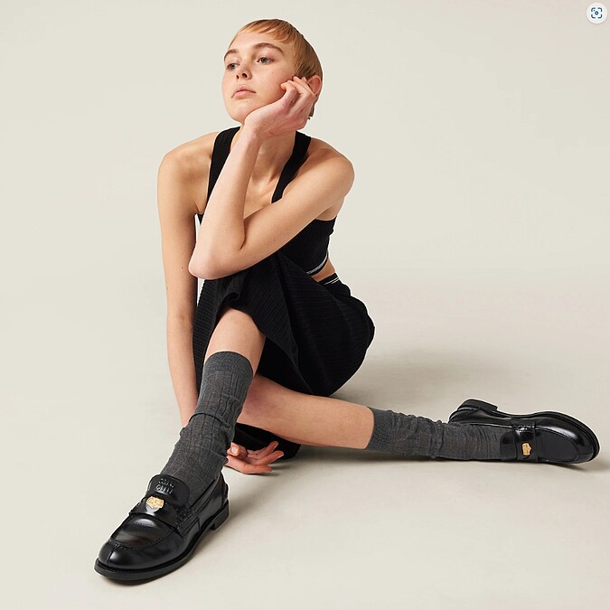 Miu Miu是打造Y2k的標配,不只推出的迷你裙讓女孩們趨之若鶩,鞋款也備受關注。這雙Miu Miu便士樂福鞋靈感源自1950年代,學生把一便士塞在皮鞋開口上視為一種潮流的舉動,為重現復古學院風格,特別在鞋面上裝設了金屬圓牌。