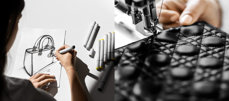 首先,會由巴黎蒙田大道工作室的設計師畫出 Lady Dior 手稿,接著再將設計圖送往義大利工坊進行製作。第一道工序是挑選皮革,工藝師解釋道:「由於籐格紋『Cannage』縫線會使皮革變得更為緊繃,所以皮革如果有任何瑕疵,瑕疵不但會被拉大,也會變得更加明顯。」因此,用來製作 Lady Dior 的皮革必須完美無瑕,而 Dior 的工藝師只需要幾秒鐘的時間,便能透過雙眼和雙手看穿細微的瑕疵、小孔、刮痕或鬆弛,精選出最好的皮革。
