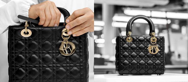 最後,工藝師在木製模板上把不同部位接合在一起,這是最難的步驟,因為必須讓三個部位的籐格紋完美接合,讓這些格紋看起來就像是以同一道縫線縫製而成。移開木製模板後,工藝師將皮革邊緣進行黏合,而儘管在縫製手提包的內外部份時,還是需要借助縫紉機使縫線更為精密準確,但事實上,人手的精準度才是掌握一切的關鍵。將打造 Lady Dior 視為創作一座建築作品的工藝師提到:「由於Lady Dior手提包的製作程序包含太多不同的工藝技巧,內外結構一樣重要,所以無法以機器取代手工。」