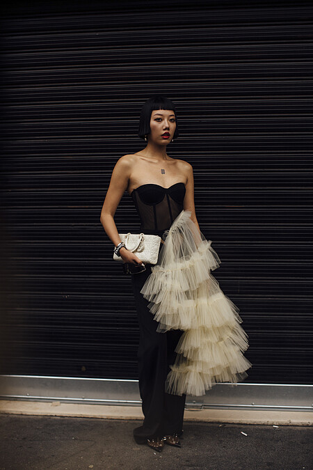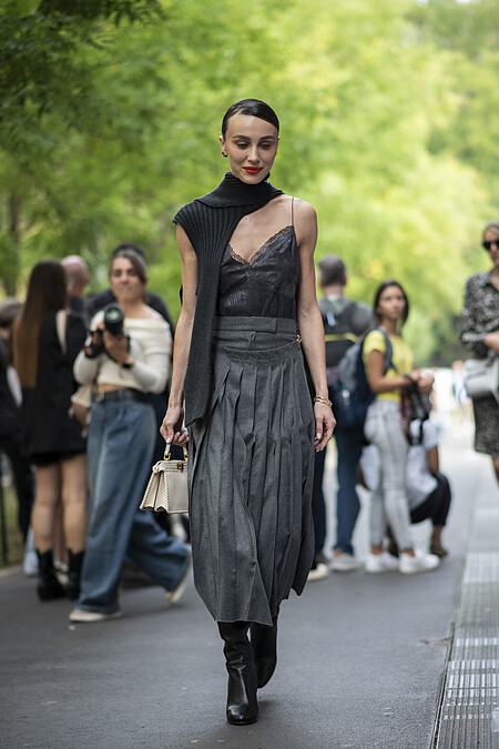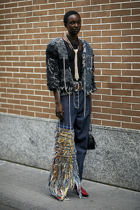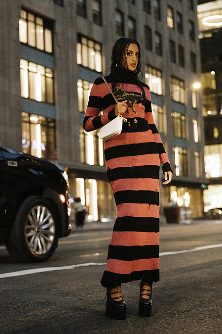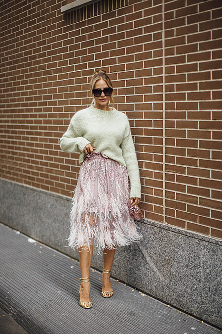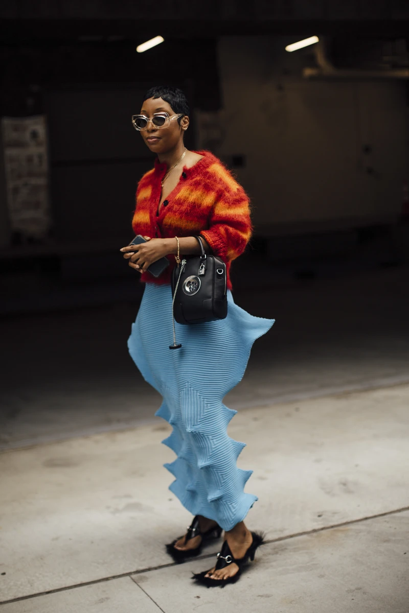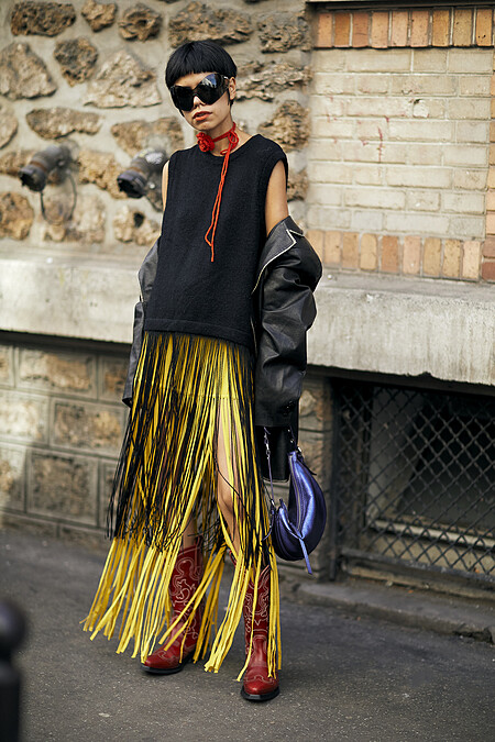 毛衣加上流蘇裙子的穿搭,這一兩年在許多品牌的秀場上算是一種潛在的趨勢,這身打扮滿有精心出席活動的時尚編輯感