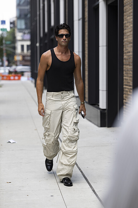 怎麼有男的?你可能會這樣問,但背心搭上落地的工裝褲,不分男女一樣適用,超適合一些有在健身的都會男女!