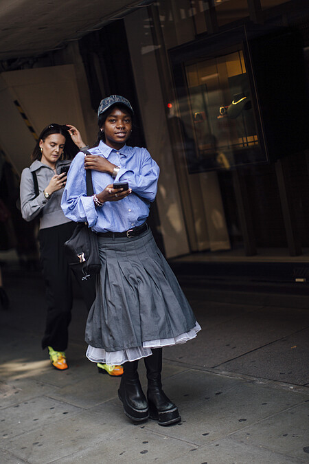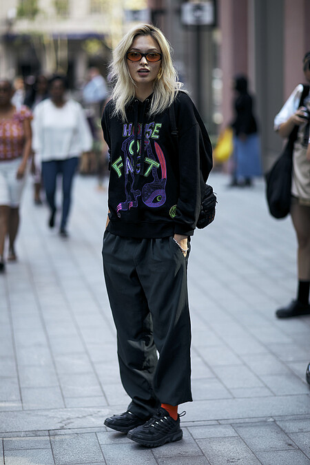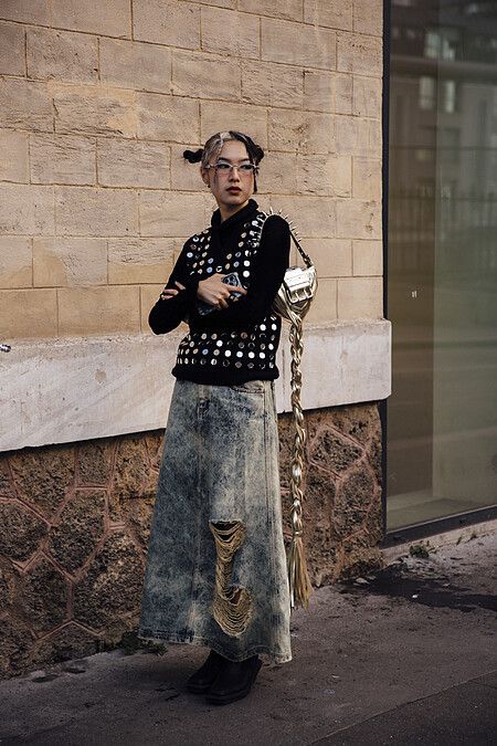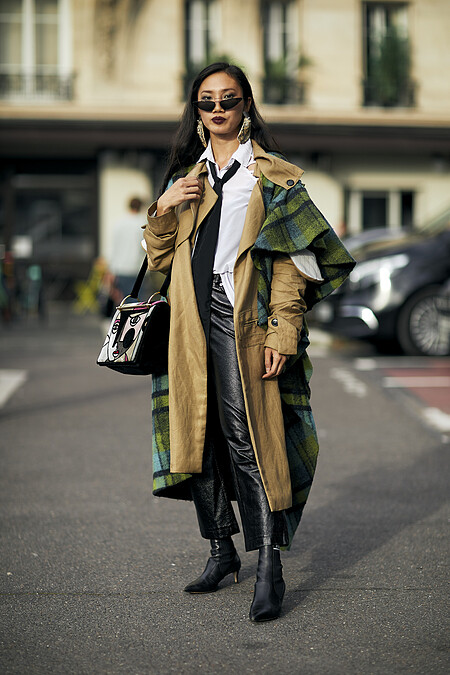 誇張的帽型讓這位有點法國女人的穿搭有了不認輸的玩味。