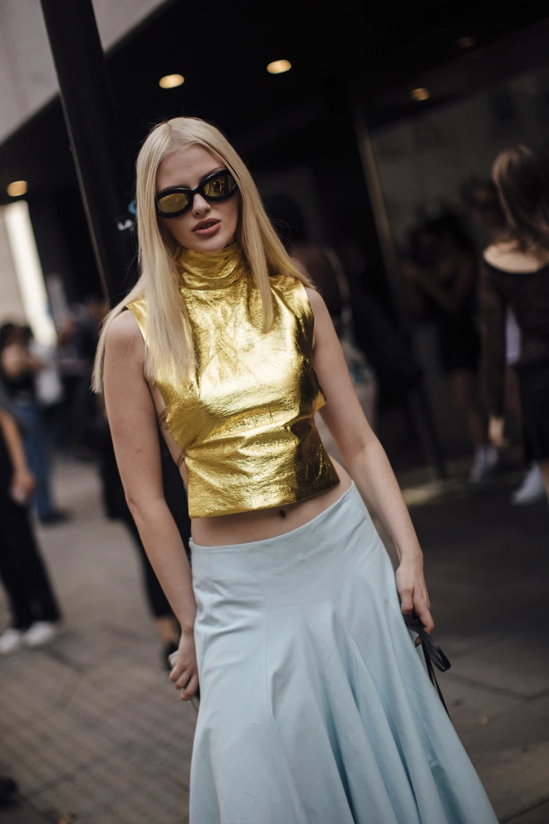 金色服飾向來不好搭,但簡單雙色同時又帶來強烈的異材質拼接,是個很好上手的搭配法。