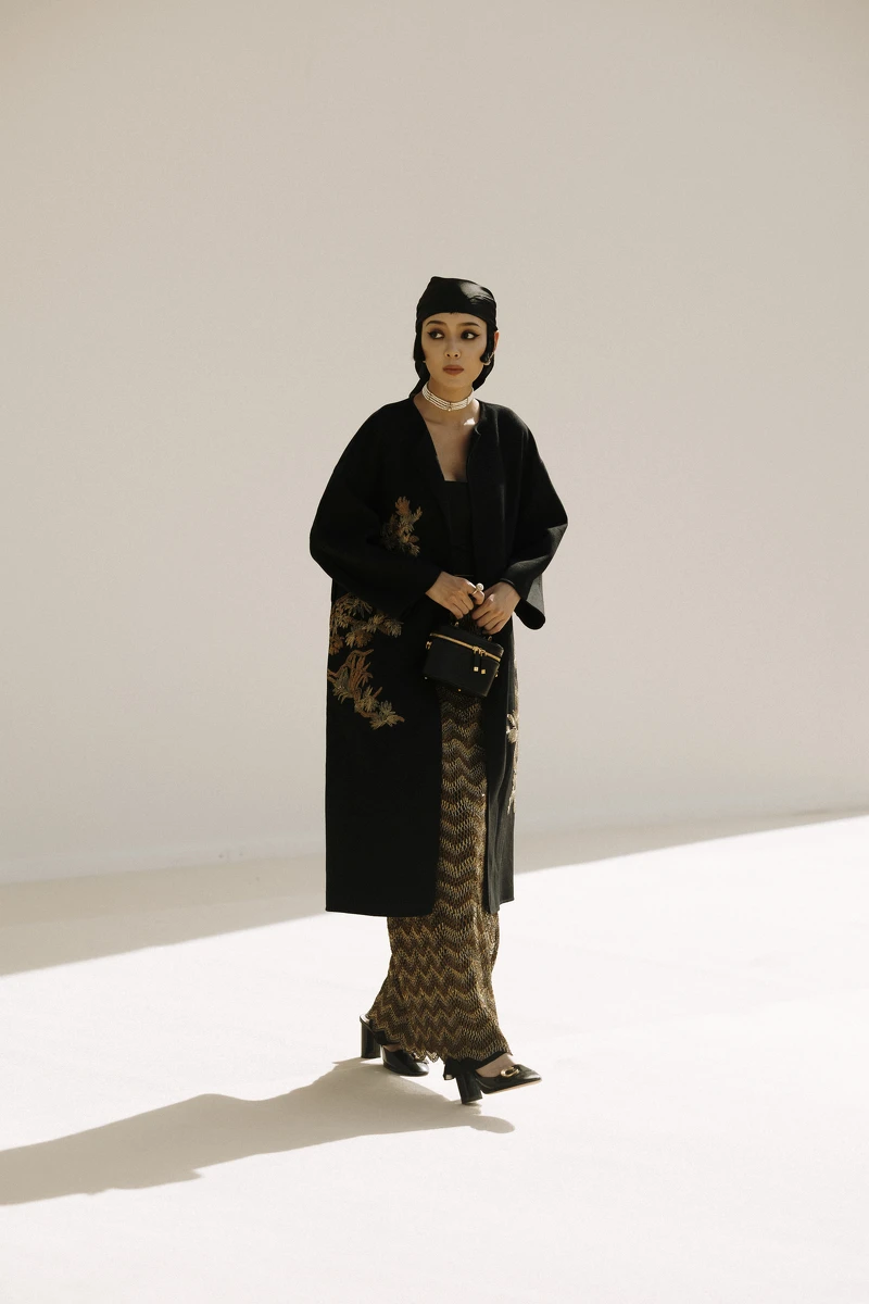 內層的白襯衫與外層的黑色襯衫以精準的堆疊,讓整體造型極具層次感