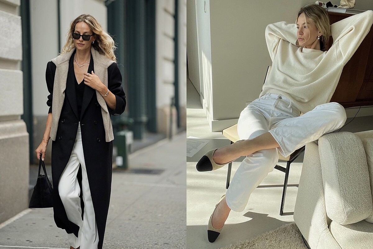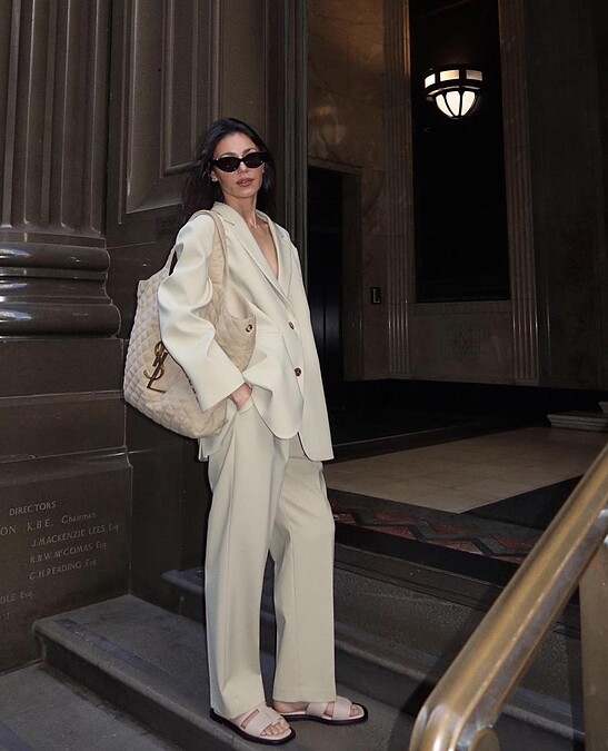 下身同樣以簡約舒適為主,若不想要太過正式,可以參考澳洲時尚部落客 Petra Mackova,善用較為休閒的丹寧元素,可將西裝褲換成牛仔褲,或是帶點剪裁特色的闊腿褲,無須過度強調身型曲線,能夠輕鬆融入日常才是Clean Fit的重點。