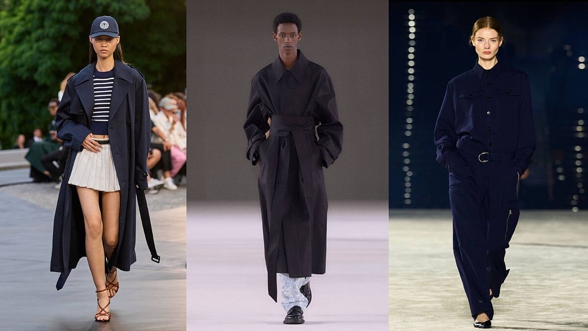 說到 Ami 你會想到什麼?是不是標誌性的紅色桃心A型標誌,但其實緊跟時裝秀場就會發現,Ami 早在2023春夏秀場就轉推俐落剪裁、合身版型的設計,從男模特身上的黑色繭型合腰大衣,到海軍藍長款風衣與短款條紋針織上衣、百褶裙的碰撞,顯得清爽年輕,再到深藍套裝,採用蹄鐵腰扣設計,用銀色點綴整套造型,優雅又乾脆。