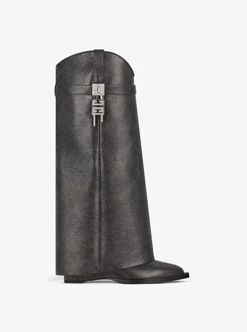 Givenchy今年秋冬為爆款Shark Lock鯊魚靴帶來嶄新造型,以弧形的靴筒打造西部牛仔風格的Cowboy系列牛仔靴,每一款皆掛上4G掛鎖。
