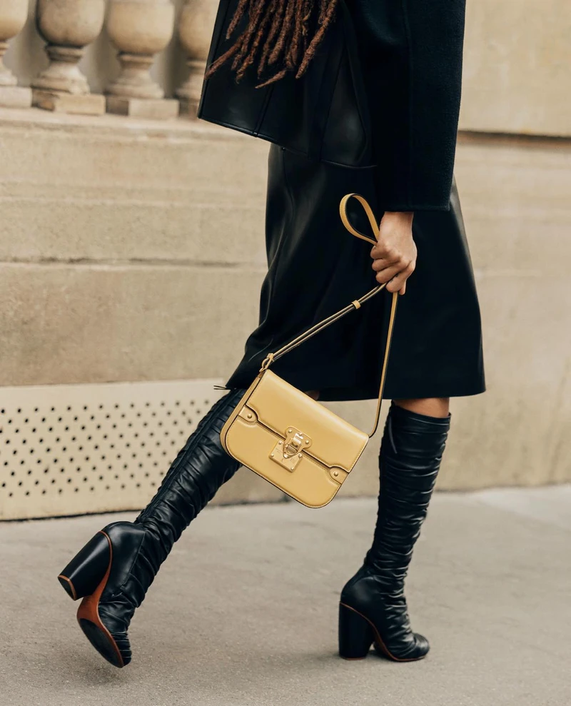 如果覺得錯視感靴款太過前衛難以駕馭,編輯也推薦Louis Vuitton的優雅選擇Olympia高筒靴,前方的中線皺褶設計是本季的焦點之一,讓小羊皮面料的鞋面能更貼合腿型,穿起來非常修飾。