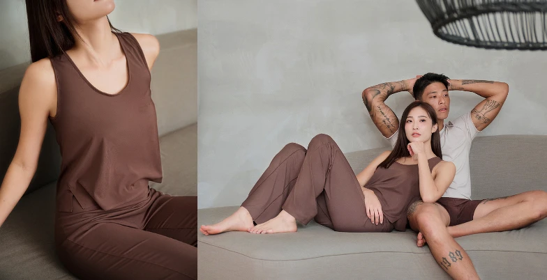雖說HUNDR.「觸覺創意實驗室」不同家居服與內著系列有各自對照的性別設計,但M編其實也會入手中性T恤與小背心給自己穿,也偷偷分享給注重居家休閒品味氛圍感的女性們,不僅可以自己入手還能買給另一半打造高質感默契居家格調LOOK,就像Ray與Jeniffer這兩位KOL穿上了了礁溪的聯名限定配色款一般,打造質感品味態度都滿分的居家默契美拉德穿搭LOOK!