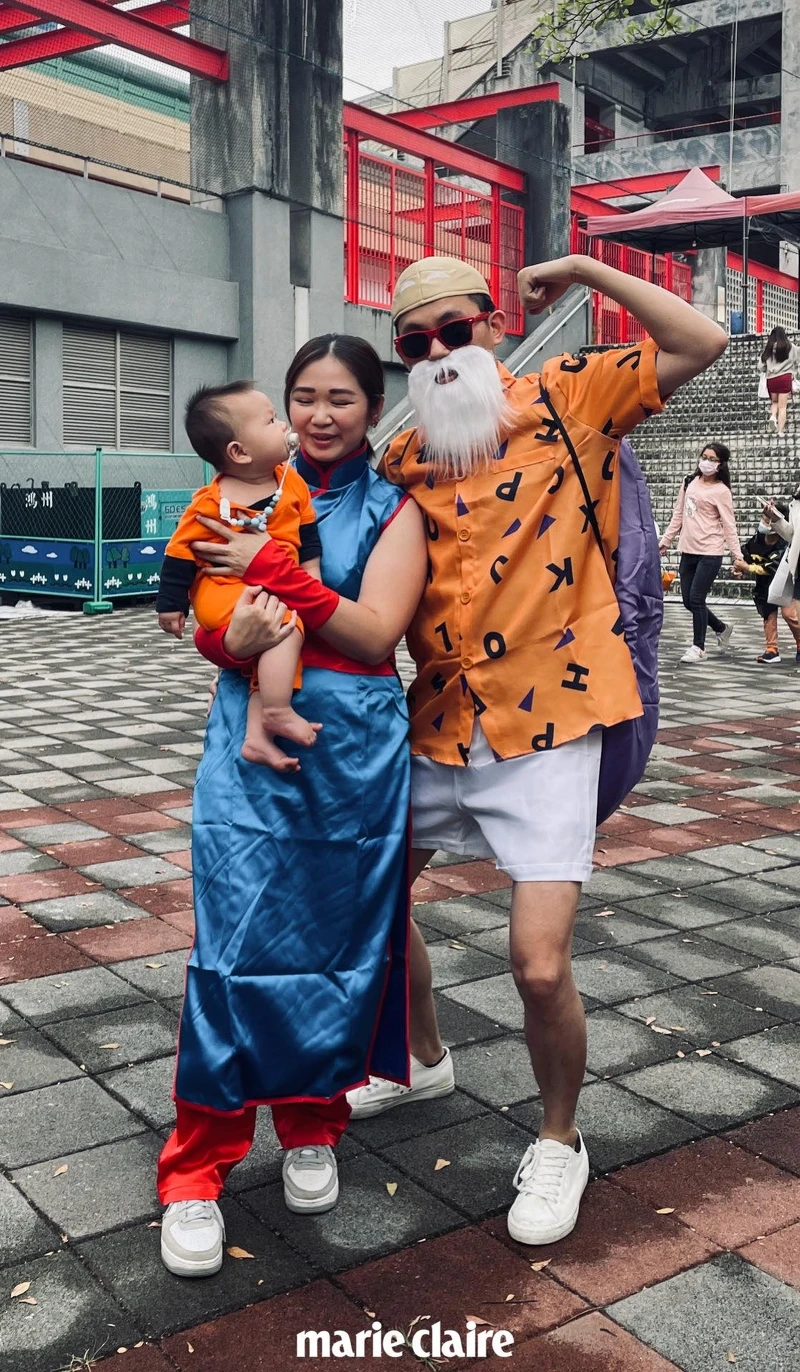 經典卡通七龍珠來報到,爸爸不顧形象化身老頭龜仙人,媽媽則是琪琪,而主角悟空當然是最可愛的孩子啦!