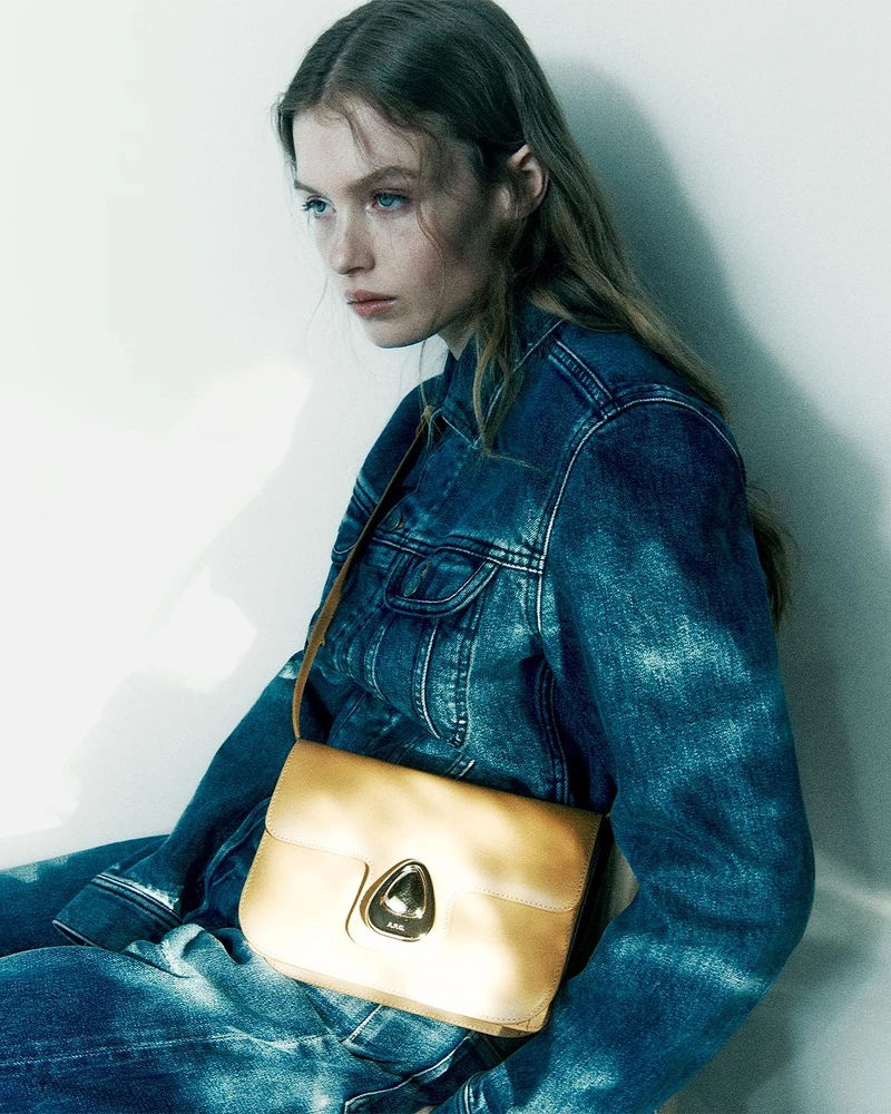 法國品牌A.P.C以經典簡約的高級質感在日韓闖出名號,深受年輕女孩們歡迎,他們家的半月包最為經典火紅,不過新推出的ASTRA包款也很值得細細品味,方正掀蓋包型綴以飯糰型狀的金屬鎖扣,製造可愛的記憶點,幼滑的皮革包面則彰顯質感,其中ASTRA包含了這顆帶點土色的黃色款式,很適合用來為美拉德穿搭增添層次。