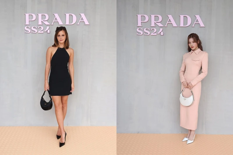 先前Prada舉行2024春夏大秀時,艾瑪華森Emma Watson以及女團TWICE成員Sana皆手提Arqué手袋出席。