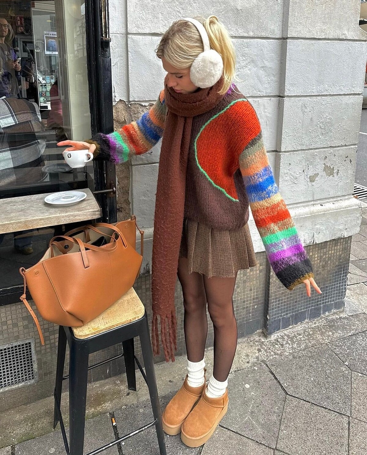 愛水不怕流鼻水的女生看過來!即使天氣冷也要露出修長美腿、窈窕腰身或是白皙香肩的女孩們,記得還是擇一部位露出就好!採用上寬下窄的搭配方式,形成一個三角形的結構,透過上、下身面積對比,提升身材比例,當上半身足夠保暖時,身體也不至於太過寒冷,像是厚外套與迷你裙的搭配,是時下法國女生之間相當流行的造型,想當街頭最辣這樣穿準沒錯。