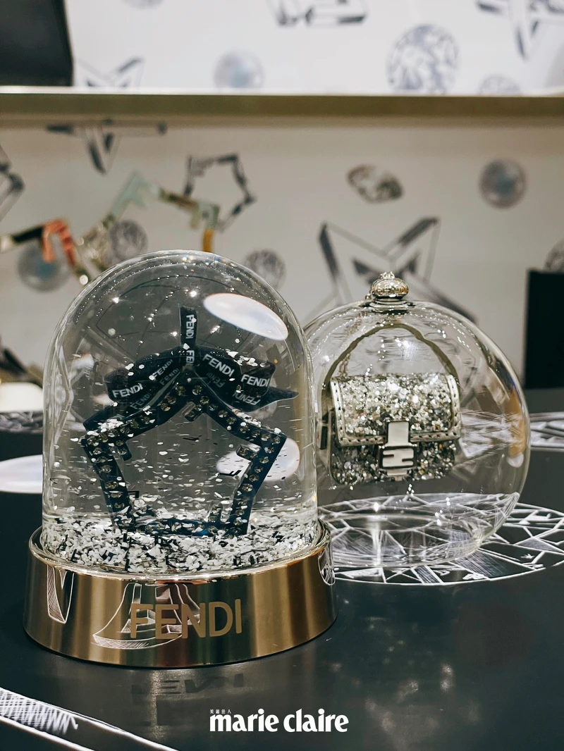隨著冬季假日系列上市,Fendi也推出了聖誕周邊來一同慶祝。聖誕水晶球裡放置了一顆鑲了水鑽的Fendi星星,仔細看會發現,裡頭的雪花裡還摻雜了些F字母的亮片,是很可愛的小細節。